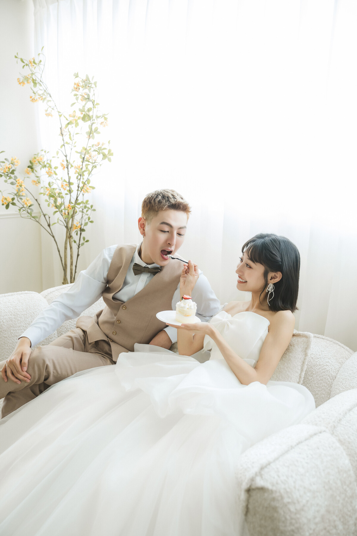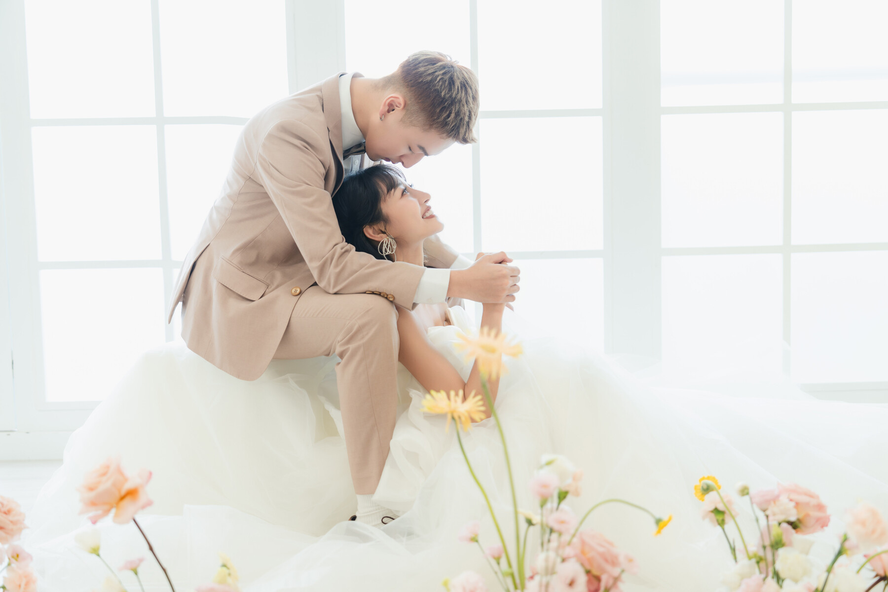 韓系極簡風的魅力,在於乾淨柔和的光影與不經雕琢的自然氛圍,純白與奶油白的色調像溫柔的濾鏡,把日常拉成更美的一刻,笑容、眼神、微微靠近的姿態,都會在簡約背景裡更清晰動人。